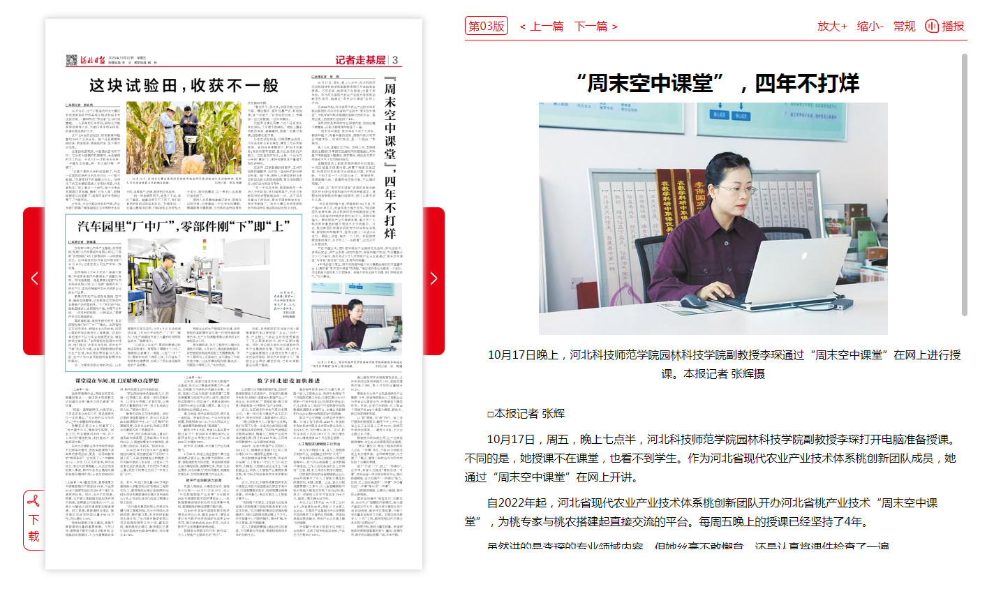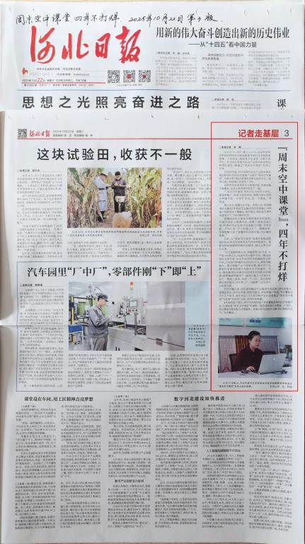 2025年10月22日《河北日报》第三版记者走基层栏目“周末空中课堂 四年不打烊”宣传报道
