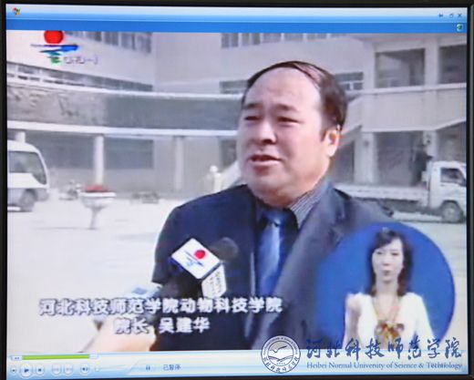 图为万象城动物科技学院院长吴建华教授接受秦皇岛电视台记者采访