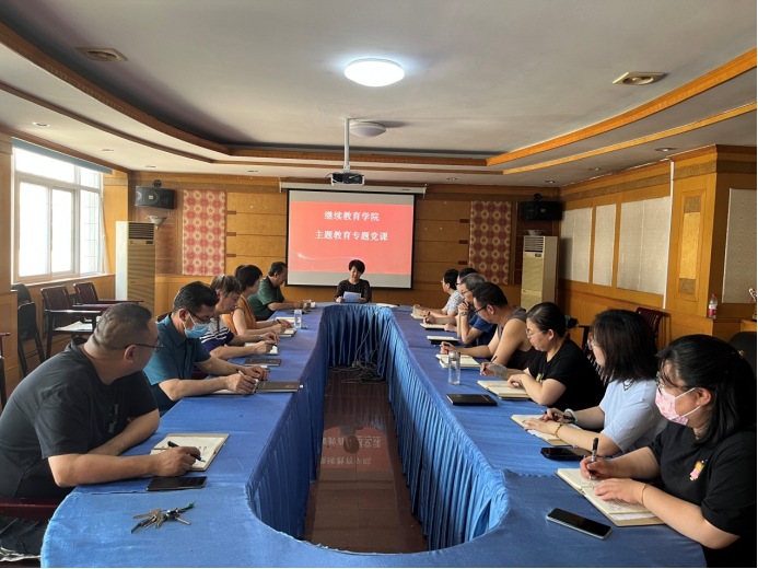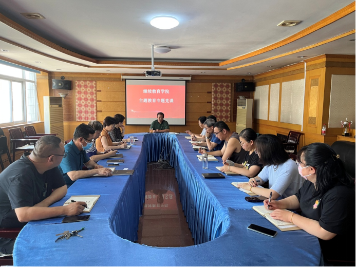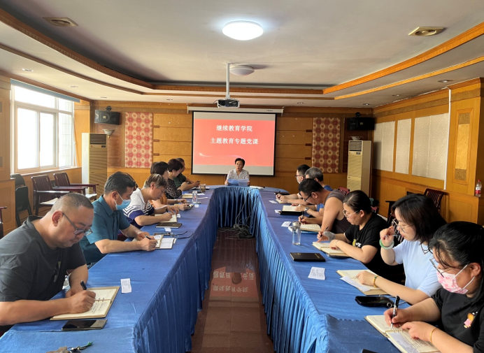 为扎实推进深入学习贯彻习近平新时代中国特色社会主义思想主题教育,发挥领导干部带头示范作用,7月6日下午,继续教育学院组织开展党员领导干部讲授专题党课。他们分别以《深入学习贯彻习近平总书记考察河北重要讲话精神暨河北省委十届四次全会精神》、《知“红线”、守“底线”,做道德高尚的教育工作者----深入学习贯彻党的二十大精神》、《坚守初心,凝心铸魂,让立德树人一路芬芳----对新时代师德师风建设的几点思考》为题,为学院全体党员讲授专题党课。党课围绕学习贯彻习近平新时代中国特色社会主义思想主题,讲学习贯彻党的创新理论特别是习近平总书记视察河北重要讲话精神、习近平总书记关于教育的重要论述的收获体会,讲运用习近平新时代中国特色社会主义思想的立场观点方法改进工作、推动发展的举措办法。通过领导干部讲党课,教育引导全体党员进一步加深对习近平新时代中国特色社会主义思想的理解把握,更加深刻领悟“两个确立”的决定性意义,增强“四个意识”、坚定“四个自信”、做到“两个维护”,更加自觉在思想上政治上行动上同以习近平同志为核心的党中央保持高度一致。(编辑:孙艳敏 审核:彭妍)