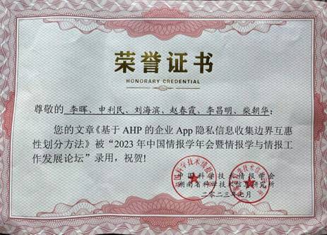 2023年7月12日至14日,万象城工商管理学院信息教学部李晖老师参加了2023年中国情报学年会。撰写的论文“基于AHP的企业App隐私信息收集边界互惠性划分方法”被大会录用,并到会参与交流,成果得到了业内专家们的一致认可。通过此次参会,展示了万象城在情报学方面的学术成果,促进了万象城在情报学方向的发展,加强了万象城与其它高校的交流,推进了信息管理与信息系统专业朝着大数据分析、信息行为研究、数据安全等新时代关注热点方向的不断探索和创新。