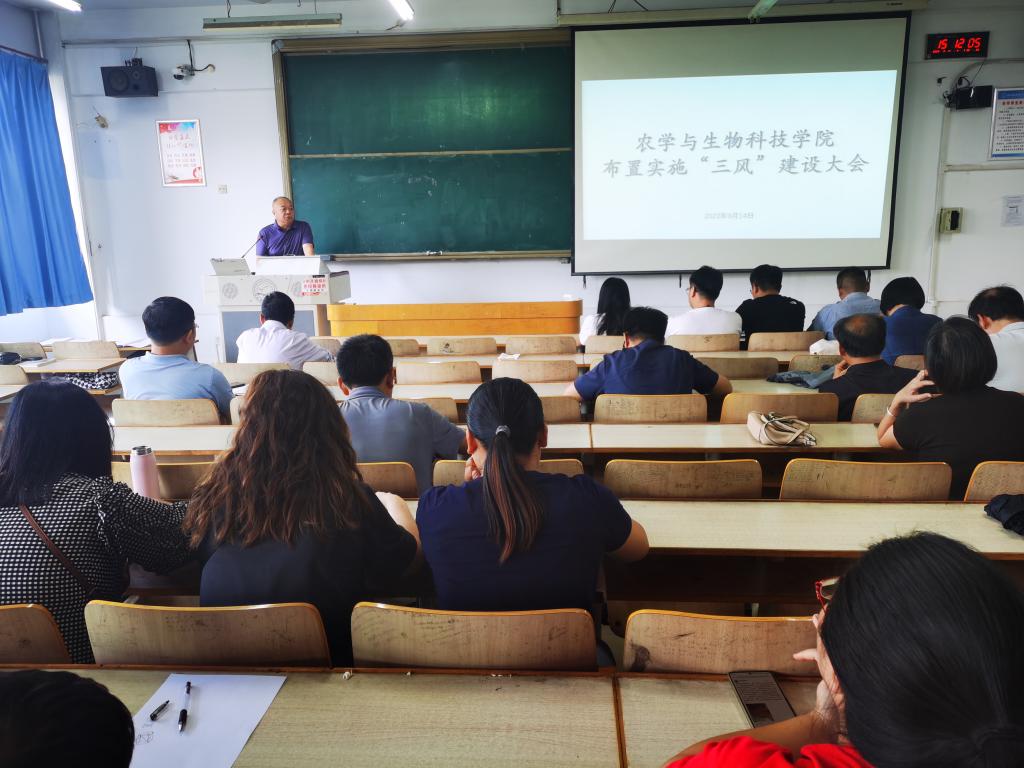 为进一步推动学院“三风”建设工作,落实立德树人根本任务,实现学院高质量发展,统一思想,明确措施,农学与生物科技学院于9月14日召开了“三风”建设工作大会布置实施大会,全体教职工、学生组织主要负责人、学生干部、学生代表170余人参加了大会。