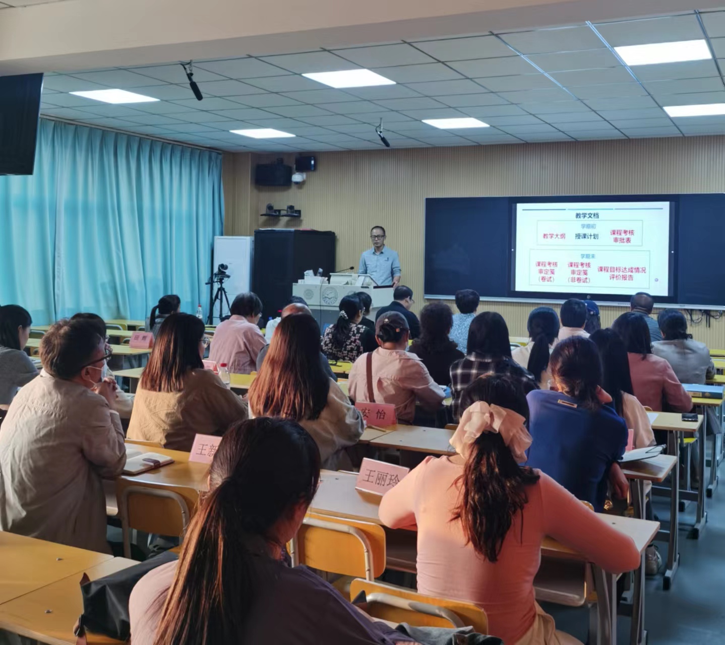 会上,孔亮博士就师范专业认证教学文档材料撰写标准及要求进行了逐项解读,对“课程目标达成情况评价报告”做了深度解析,并就文档材料撰写和准备过程中遇到的问题分享了解决经验,对大家提出的问题逐一给予了解答。期间,与会教师针对师范专业认证工作中思政课程文档准备过程中遇到的难点、痛点问题进行了讨论。(编辑:孙艳敏 审核:彭妍)