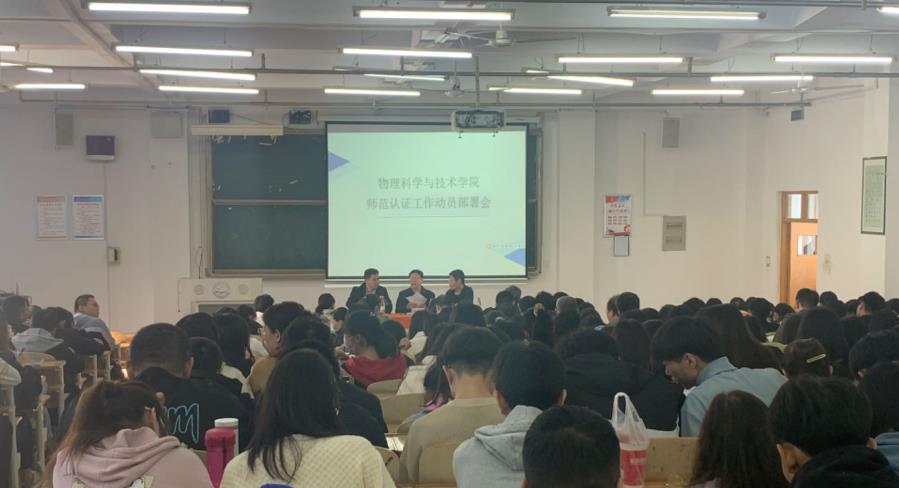 为全面深入推进物理学师范专业认证工作,10月19日下午,物理科学与技术学院在逸夫楼A410召开师范专业认证工作动员部署会。学院全体教职工参加了会议,会议由学院党委书记赵维新主持。