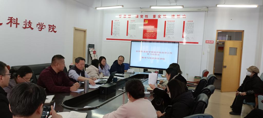 为贯彻落实学校新一轮本科教育教学审核评估工作,2024年1月23日,数学与信息科技学院在逸夫楼1001会议室召开本科教育教学审核评估工作学习动员会。学院领导班子成员,各教学部、实验室、党政办公室、教学办公室、学科办公室、学工办及分团委负责人参加了会议,会议由学院行政负责人主持。