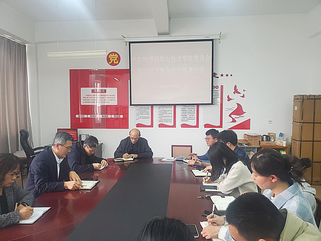 2024年4月15日,物理科学与技术学院党委组织开展党纪学习教育启动部署会。学院党政领导班子成员、党委委员、各教学部、实验室、党政办、学工办、院分团委负责人、各党支部书记参加了会议。