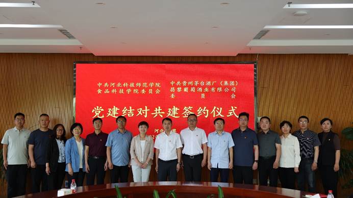 2024年5月17日,食品科技学院党委与贵州茅台(酒厂)集团昌黎葡萄酒业有限公司党委在茅台凤凰庄园举行党建结对共建签约仪式。食品科技学院党政领导班子、贵州茅台集团昌黎葡萄酒业有限公司党委书记、董事长李春风,党委委员、副总经理杨亮,党委委员、纪委书记卢佳,党委委员、副总经理林辉出席签约仪式,食品科技学院酿酒党支部书记、教学部主任,企业生产、销售、财务等部门主要负责同志一同参加活动。