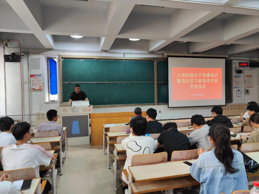 2024年5月23日,机电工程学院党委结合党纪学习教育工作部署,举行了入党积极分子党课培训暨党纪学习教育读书班开班仪式,共有180名入党积极分子参加了培训。学校关工委“五老”宣讲团成员、离退休第一党支部书记崔勇教授应邀主讲。学院党委书记、副书记、团委书记参加活动。