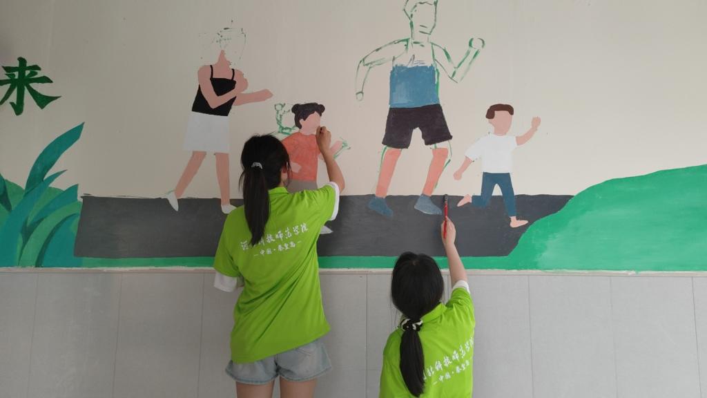 结合社区需求,实践团为青馨家园社区绘制了“拥有健康,拥抱未来”主题文化墙,用生动的人物形象和清新的场景描绘,向居民们传达运动、健康等理念,美化了社区环境,提升了文化氛围,获得居民和社区的广泛好评。