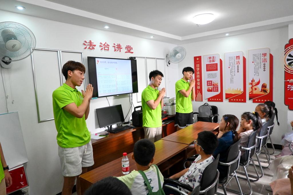 在御品星城、竹海社区,实践队员教授孩子们基本的乐理和节奏知识,带领孩子们学习了歌曲《感恩的心》、《让世界充满爱》,并学习了手势舞,让孩子们在唱歌、舞蹈的同时,感悟和表达对父母、家人、朋友的爱与感恩,增强了孩子们的情感认知和道德素养。