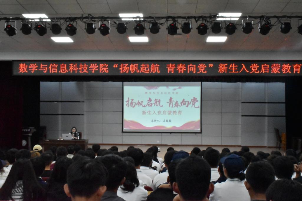 2024年9月8日至11日,数学与信息科技学院党委举办了“扬帆起航,青春向党”新生入党启蒙教育活动,旨在深化同学们对中国共产党的理解,激发他们的爱国热忱与向党之心,鼓励他们积极向党组织靠拢。