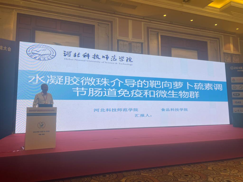 大会通过特邀报告、专题论坛、展览展示等多种形式展开,围绕农产品加工新技术、食品营养与安全、功能性食品开发、食品安全与检验技术、农产品加工装备、农产品贮藏与保鲜、农产品活性组分与开发应用等不同领域,设置了全体大会报告和6个分会场报告。学院李军教授作了“水凝胶微珠介导的靶向萝卜硫素调节肠道免疫和微生物菌群”的分会场报告。