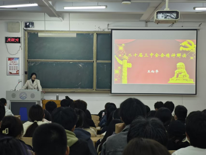 本次党课培训学院党委特邀原马克思主义学院王向华教授作“党的二十届三中全会精神解读”专题党课。王向华教授强调了学习党的二十届三中全会精神的重大意义,并以推进中国式现代化建设视角详细解读了二十届三中全会精神。学院党委委员分别结合学习和工作实际开展了生动的党课讲解,深受同学们喜爱。