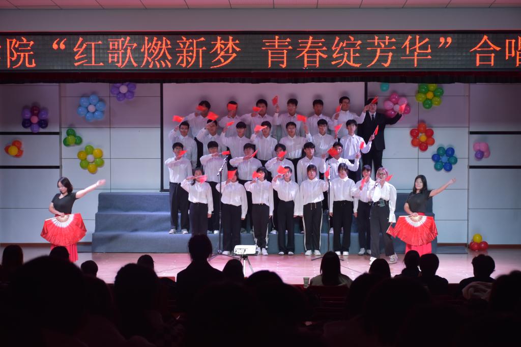 本次合唱比赛分为初赛和决赛两个阶段,经过初赛筛选,7个班级进入决赛。决赛现场,各参赛队伍身着统一的服装,精神饱满,台风稳健。同学们以饱满的热情和嘹亮的歌声演绎了校歌和经典红歌,从《没有共产党就没有新中国》到《团结就是力量》,从《万疆》到《国家》,一首首歌曲唱出了新生们对祖国的热爱与祝福,也展现了学院学子锐意进取、昂扬向上的精神面貌。合唱中还巧妙地融入了舞蹈、朗诵、弹奏等附加表演元素,为观众带来了一场视听盛宴,比赛现场气氛热烈,掌声雷动。经过激烈的角逐和评委们的认真评选,最终评选出了一等奖一个,二等奖两个,三等奖四个。