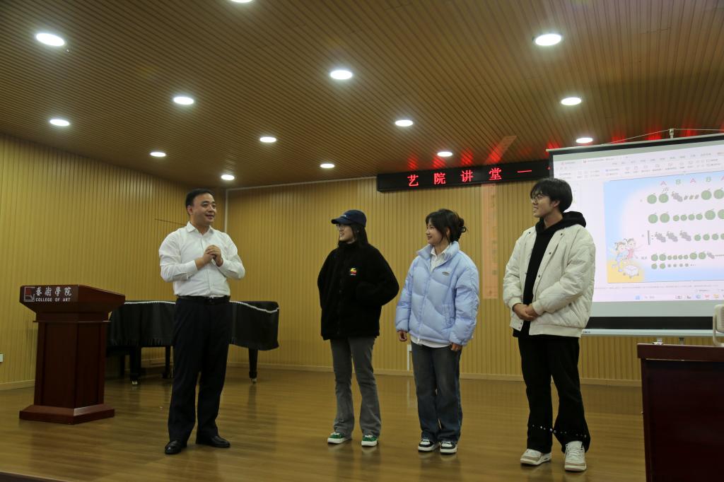 8日下午,刘杰在众诚报告厅为艺术学院师生们作“快乐的奥尔夫音乐——走进多元素音乐课堂”主题讲座,讲授了奥尔夫音乐在幼儿教育当中的运用,通过生动有趣的互动和体验,让大家真切感受到奥尔夫音乐理念对于幼儿教育的创新推进,启发了师生们的创新思维,同时,通过讲述自身创业经历,为同学们的职业生涯规划起到了积极的指导作用。