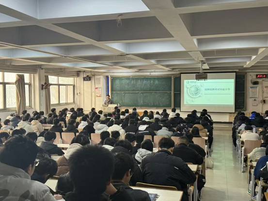 张哲结合自身多年经验,讲授了国家电网招聘考试的流程、备考策略、以及供电公司各岗位分析等方面内容,详细解析了国网考试的难点和重点,分享了实用的备考技巧。此次讲座,不仅为学生们提供了宝贵的国网招聘考试的备考技巧和经验,也为学院推动学风建设和人才培养质量提升奠定了坚实基础。