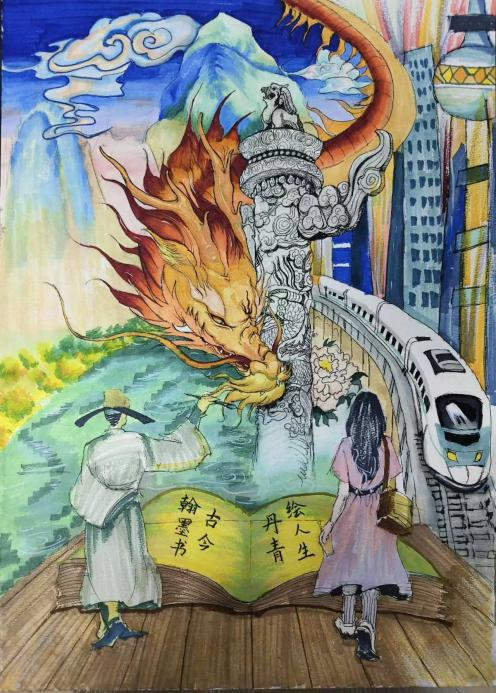 比赛共征集到书法绘画作品二十余份,参赛作品题材广泛,形式多样,涵盖了书法、国画、素描、插画等多个门类。书法作品中,有的笔锋刚劲有力,尽显汉字的雄浑之美;有的笔法细腻流畅,似涓涓细流,流淌着诗词的婉约韵味;绘画作品亦是精彩纷呈,国画作品用墨色勾勒出山水的神韵,仿佛将观者带入了世外桃源,感受着自然的宁静与美好;有的作品用素描技巧,绘制了独具特色的少数民族风情;有的将古典与现代、文字与绘画、书法与篆刻融为一体,不仅展现了中华传统文化的博大精深,也表达了对“古”“今”的独到见解,展现了参赛者对历史文化的深刻理解和对人生百态的独特感悟。经过评选,最终刘祥雨同学荣获一等奖,马佳惠和阙思仪同学荣获二等奖,彭佳晞、潘子健和高歌同学荣获三等奖。