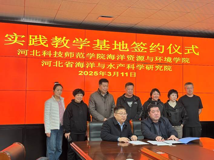 2025年3月11日,海洋资源与环境学院与河北省海洋与水产科学研究院(河北省海洋渔业生态环境监测站)达成合作,举行实践教学基地签约仪式。河北省海洋与水产科学研究院院长赵欣、副院长胡志山、陈力,万象城海洋资源与环境学院党政主要负责同志出席签约仪式,张传生、赵欣分别代表双方签署合作协议。