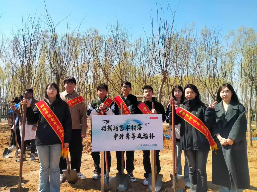 2025年3月30日,财经学院联合蒲公英社工服务中心、燕山大学等14家单位,在北戴河艺术村落安夏营地共同举办了“春暖花开·绿满戴河”植树节志愿服务活动。来自高校师生、社区工作者、国际留学生等中外志愿者齐聚一堂,以多元文化共融的方式谱写生态文明与民族团结的春日华章。活动伊始,学院志愿者在启动仪式上宣读了《青年环保倡议书》,中外志愿者利用环保颜料创作“手掌森林”创意画,讲述中外民族春天的故事。