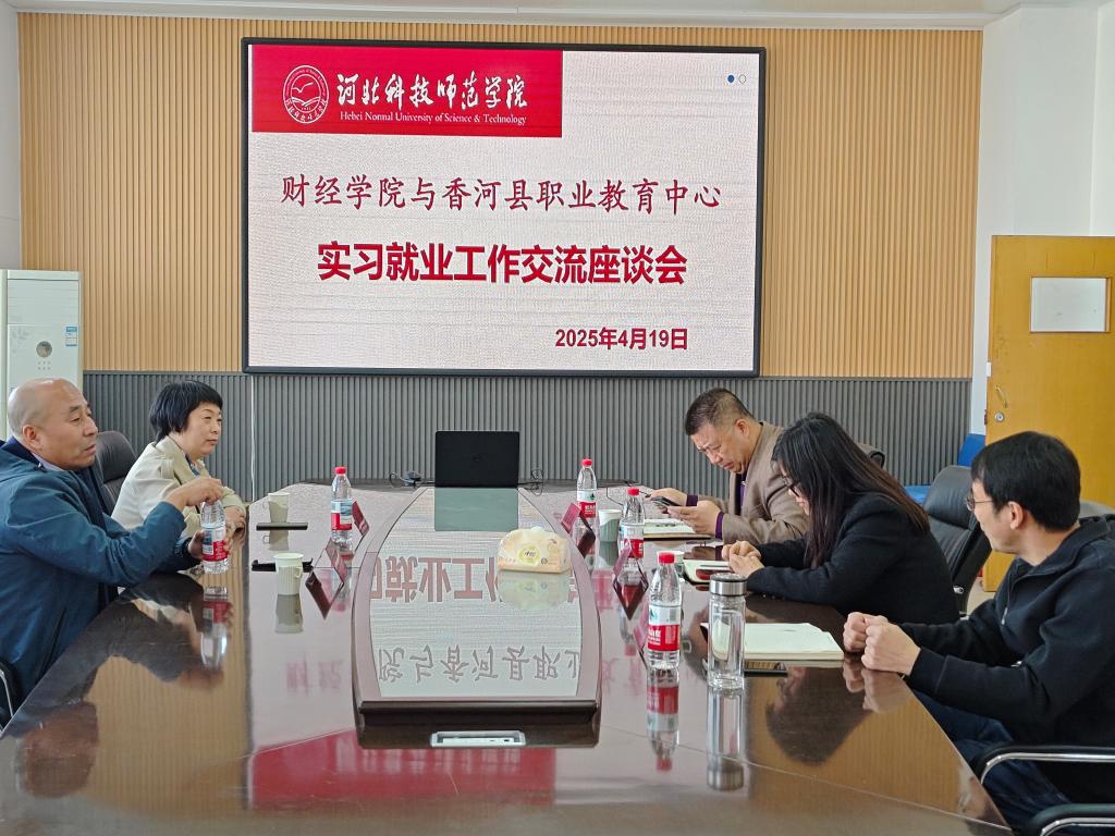 2025年4月19日,财经学院与香河县职业教育中心举行实习就业工作交流座谈会。财经学院相关领导,香河县职业教育中心教学负责人薛承、凌燕出席会议,双方就学生实习就业等展开深入交流。