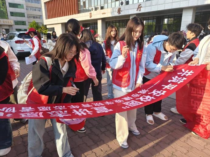 活动期间,学院10位反诈宣讲员组成专项小分队,首先向志愿者讲解校园常见诈骗套路及典型电信诈骗案例,剖析诈骗分子的作案手法与心理陷阱。随后,宣讲员与志愿者分组深入校园各处,向师生发放防网络电信诈骗宣传单,并结合真实受骗案例,引导学生思考防范要点,直观认识电信诈骗的危害性。活动现场还设置了“反诈承诺签名”环节,师生们在横幅上郑重签字,共同承诺筑牢防范电信网络诈骗的安全屏障。