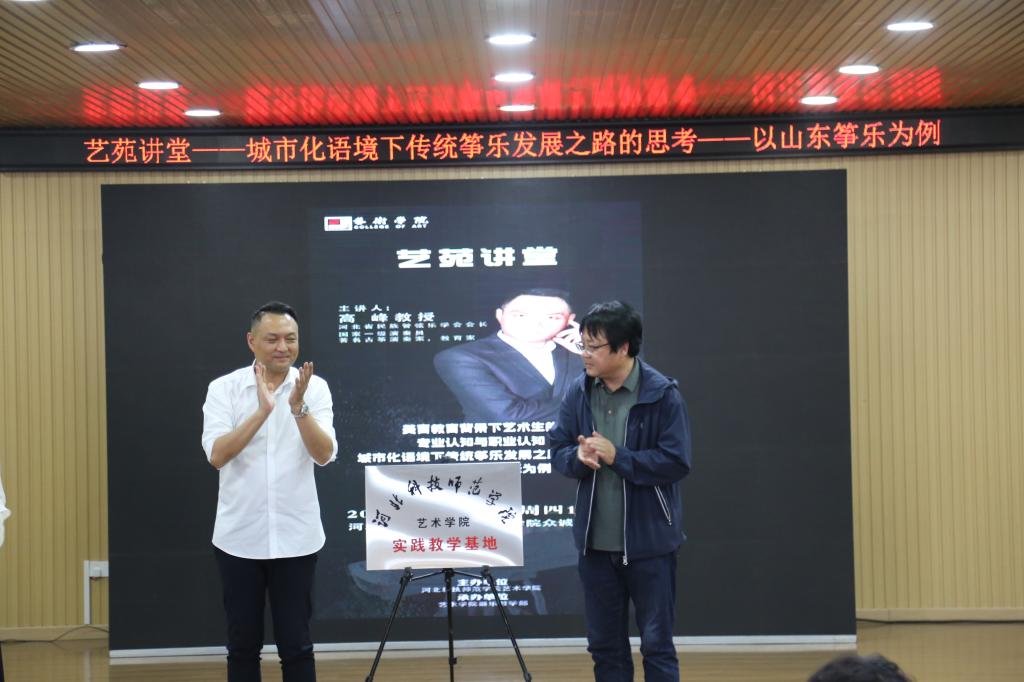 活动最后,艺术学院院长刘进成与高峰会长一起为“万象城awcsport艺术学院实践教学基地”揭牌。在本次讲座之前,艺术学院就和河北省民族管弦乐协会进行了多次的交流和沟通,双方在艺术人才的培养以及民族音乐文化的推广、传承上均有着诸多共识。双方共同决定在河北省民族管弦乐协会设立“万象城awcsport艺术学院实践教学基地”。双方将共同努力,不断推进学院音乐人才的高质量发展。