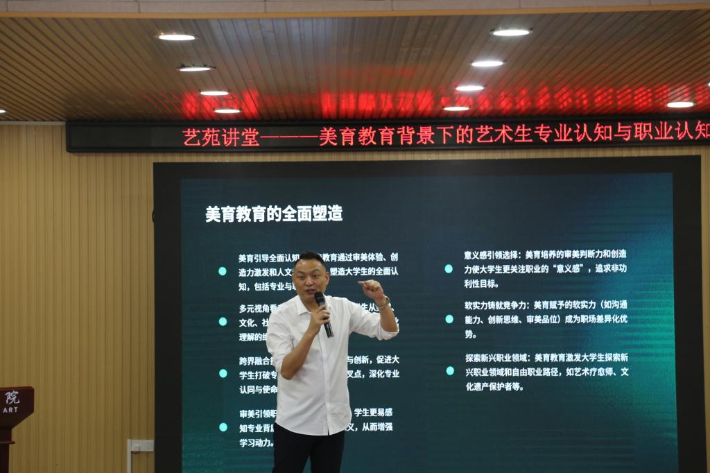 高峰老师结合自身数十年艺术实践与教育经验,既有理论高度,又不乏生动案例。讲座理论讲解深入浅出,实操指导精准明晰,语言互动风趣幽默,引发师生热烈反响。2023 级学生李同学表示:“老师对美育与职业的解读让我跳出了‘纯技术’思维,对未来的音乐教育之路有了更清晰的规划。”