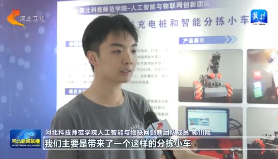 2025年5月28日至30日,2025年京津冀人工智能+人才科技成果展在河北秦皇岛经济技术开发区举办。数学与信息科技学院人工智能创新团队携“智能充电桩”和“智能分拣小车”两项成果参加成果展。展会期间,智能分拣小车凭借其高效的识别分拣能力和创新的应用场景设计,吸引了众多参观者驻足体验和咨询。中国新闻网、河北卫视对学院师生进行了采访报道。