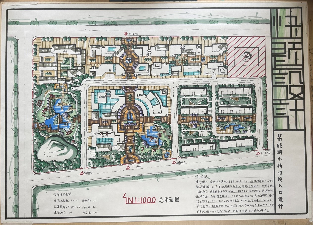 大赛共收到来自城乡规划专业学生的57份参赛作品,作品集中展现了城规学子的创新思维能力与专业素养,他们运用娴熟的绘图技巧,通过精美的线条和丰富的色彩,生动地展现出一个个充满创意与活力的城市空间设计方案。这些作品不仅展现了同学们扎实的专业功底,更体现了他们对城市发展的深刻思考和独特见解。大赛评审团从方案设计、规范与法规、设计表达、创新与特色等多个维度,对参赛作品进行了严格、细致的评审。最终,冯煜淇凭借其对地块的把控以及优秀的表达技法摘得桂冠。