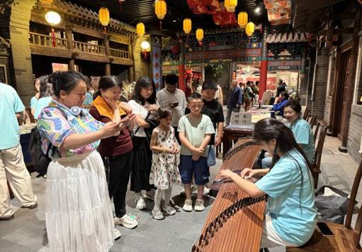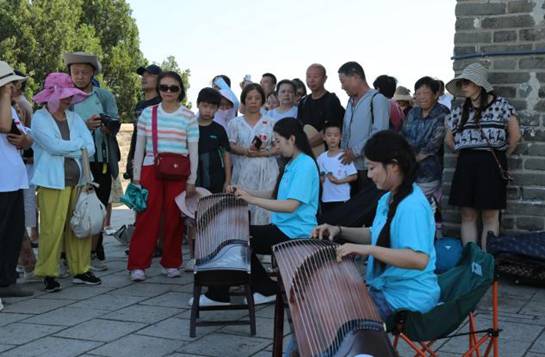 演奏间隙,成员们热情洋溢地邀请游客,尤其是活泼可爱的小朋友上前体验弹奏。小朋友们带着好奇与兴奋,轻轻触碰琴弦,在这“听觉”与“触觉”的双重感受中,大家真切地领略到传统音乐与长城文化交融的独特魅力。这种互动,不仅让游客们更深入地参与到活动中,更在无形之中为古老的长城文化注入了鲜活的青春活力。