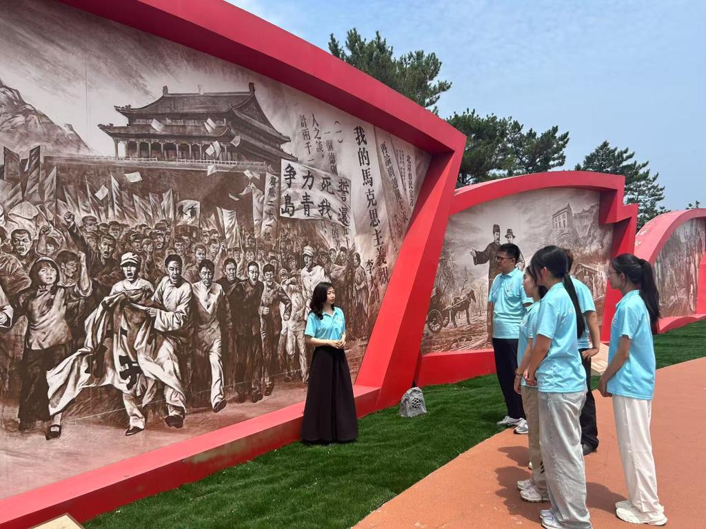 实践团先后开展了“重走大钊路,再上五峰山”“行走的团课”“行走的特别团日”等多项主题鲜明、富有特色的活动。实践团在“大钊山居处”“李大钊革命活动旧址展陈室”等地,组织沉浸式学习和集中研讨,并通过开展特别团日活动,进行红色经典诵读和革命诗篇朗读等,追忆革命先驱李大钊在昌黎五峰山的革命活动事迹,赓续红色血脉,汲取奋进力量。活动中,实践团指导教师创新教育形式,在赤旗广场为实践团成员讲授了一堂“行走的团课”。