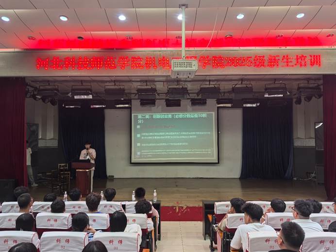 2025年9月3日, 机电工程学院在开发区校区学术报告厅开展了新生教育培训大会。新生辅导员班主任老师、2024级优秀学生代表以及2025级全体新生,共计394人参加了此次培训。