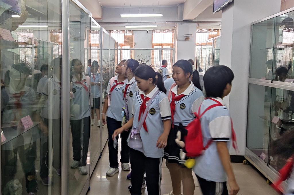 小学生们在脊椎动物标本室参观