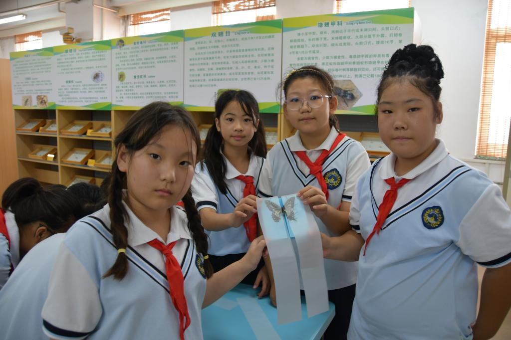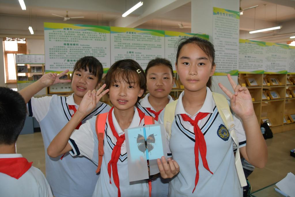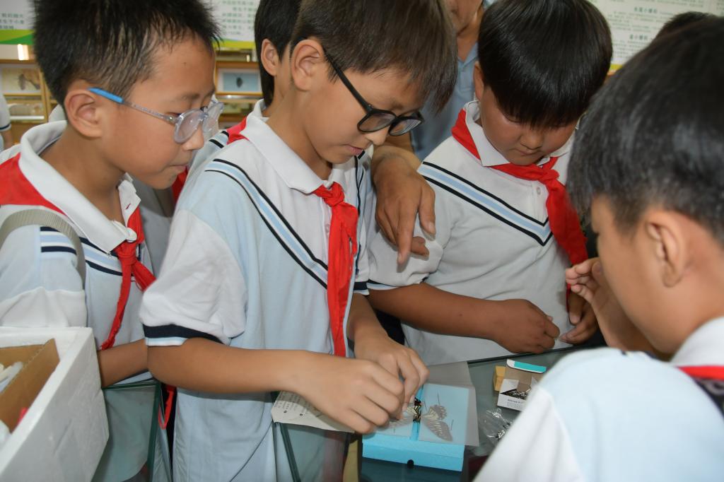 小学生们正在展示自己制作的蝴蝶标本(三)