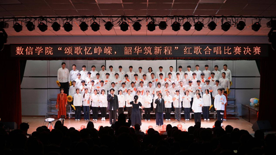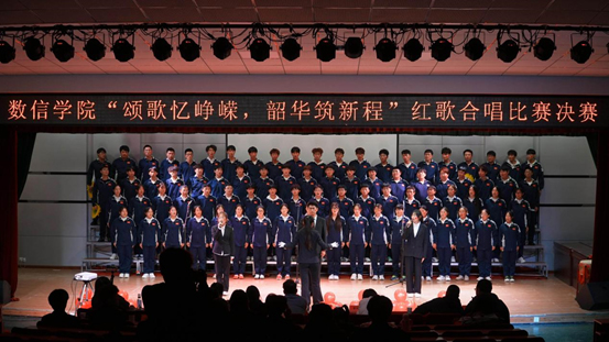 本次比赛分初赛和决赛两个阶段。经过初赛激烈的比拼,最终脱颖而出8支队伍晋级决赛。决赛现场,参赛班级身着整齐统一的服装,身姿挺拔、精神抖擞,台风稳健大气。从《没有共产党就没有新中国》的铿锵有力到《歌唱祖国》的豪情满怀,从《少年中国说》的朝气蓬勃到《大中国》的深情款款,一首首经典红歌与校歌轮番上演,旋律悠扬、歌声嘹亮,既唱出了对祖国母亲的赤诚热爱与美好祝福,更彰显了数信学院学子锐意进取、奋发图强的青春风采。此外,各队伍还巧妙融入舞蹈、朗诵、乐器弹奏等创意元素,将听觉享受与视觉体验完美结合,为现场观众呈现了一场精彩纷呈的视听盛宴,台下掌声、欢呼声此起彼伏,气氛热烈非凡。经过激烈的角逐和评委们的认真评选,最终评选出了一等奖一个,二等奖两个,三等奖三个,优秀奖两个。