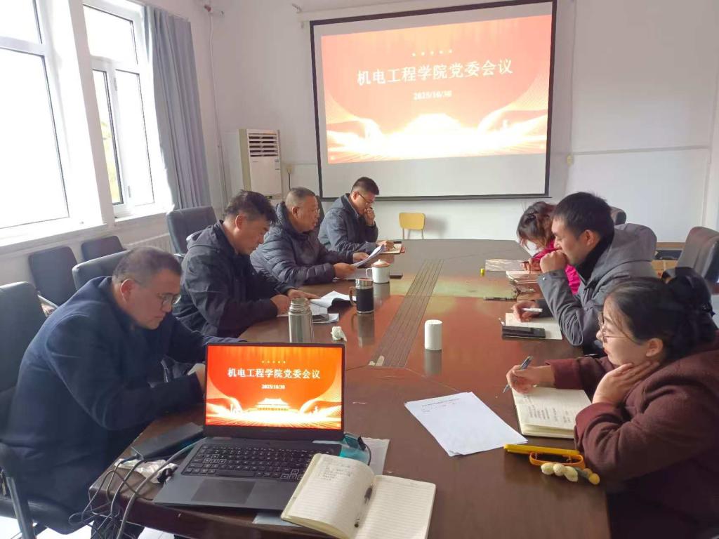 2025年10月30日,机电工程学院党委在昌黎校区四楼会议室召开深入学习贯彻党的二十届四中全会精神专题会议,学院党委委员、各党支部书记参加会议。