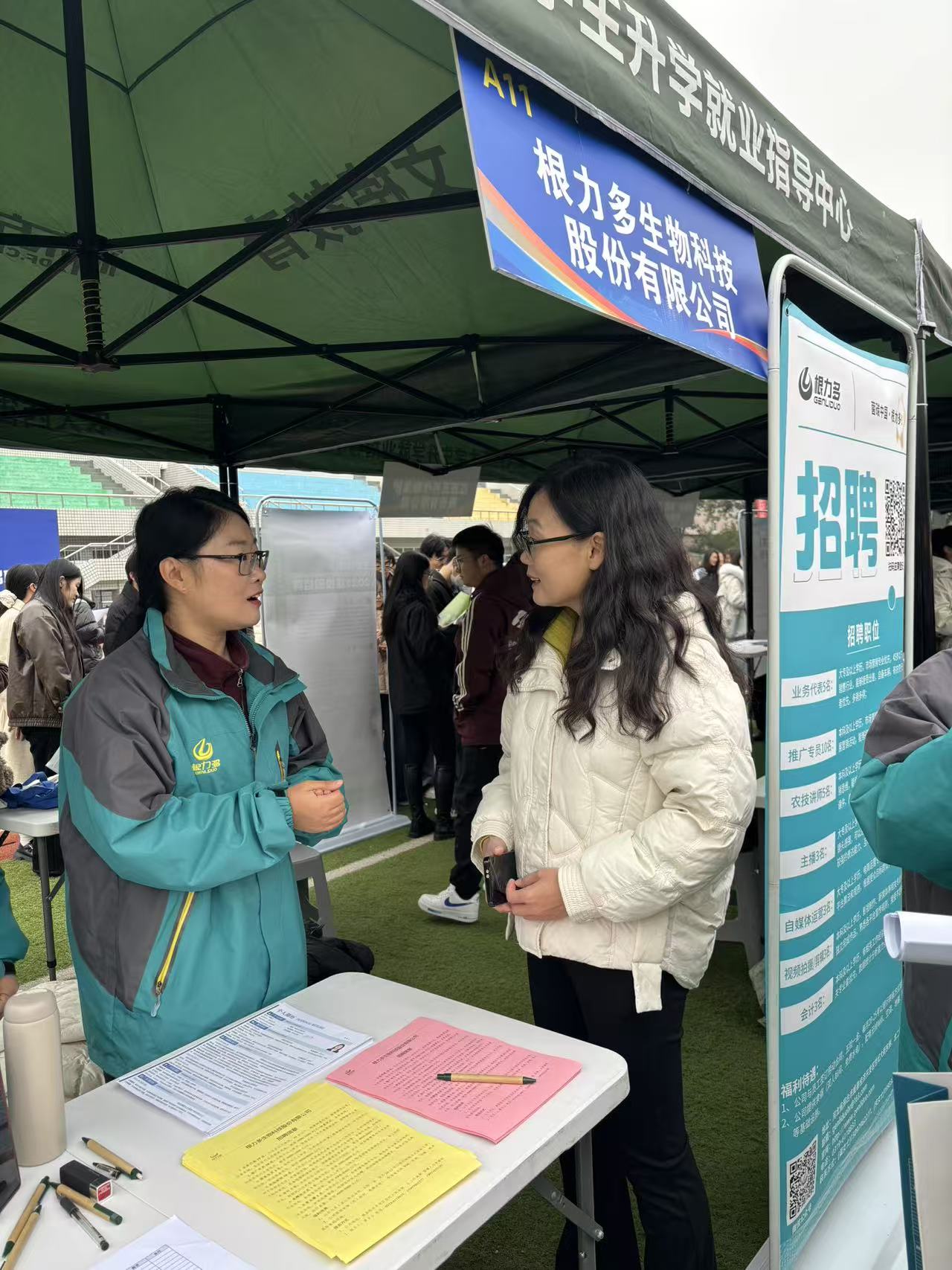 活动现场,团队依托双选会平台,主动对接多家农林领域优势企业,搭建深度沟通渠道。成员向企业重点介绍学院专业设置、学科优势及人才培养模式,展现毕业生综合素养与就业竞争力;通过深入沟通,精准掌握园艺、园林行业人才需求趋势与岗位能力要求,并围绕企业入校招聘、实习实训基地建设、产学研合作等,与企业人力资源负责人务实交流。