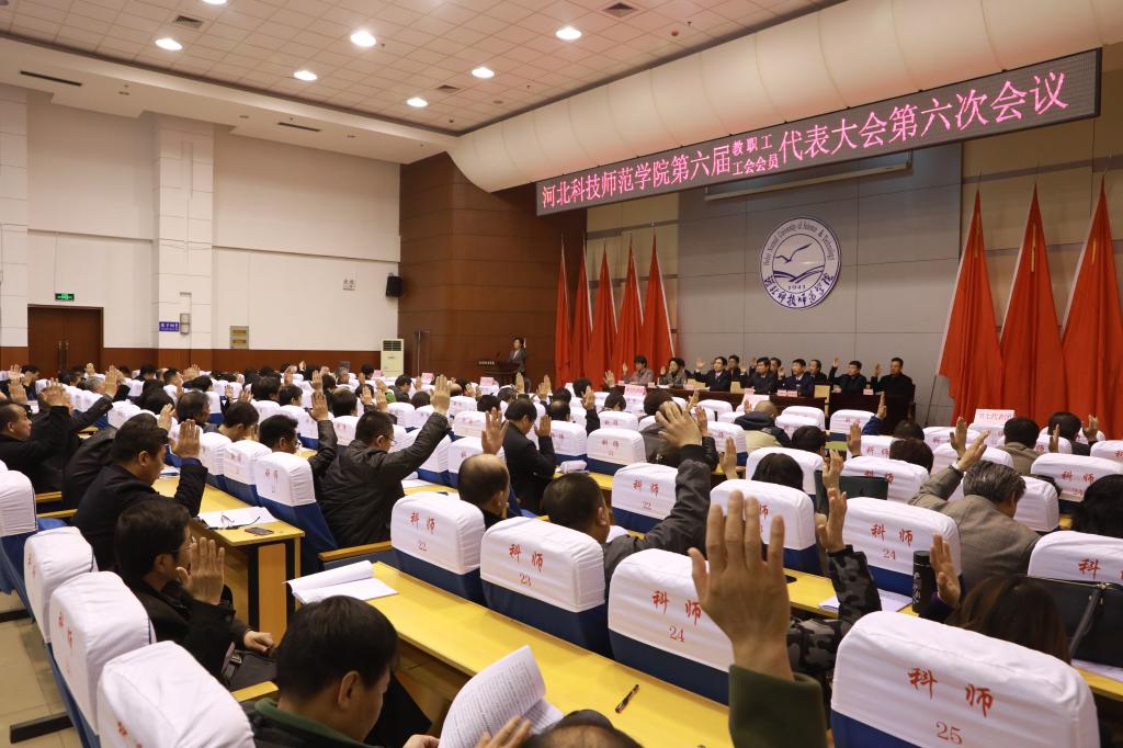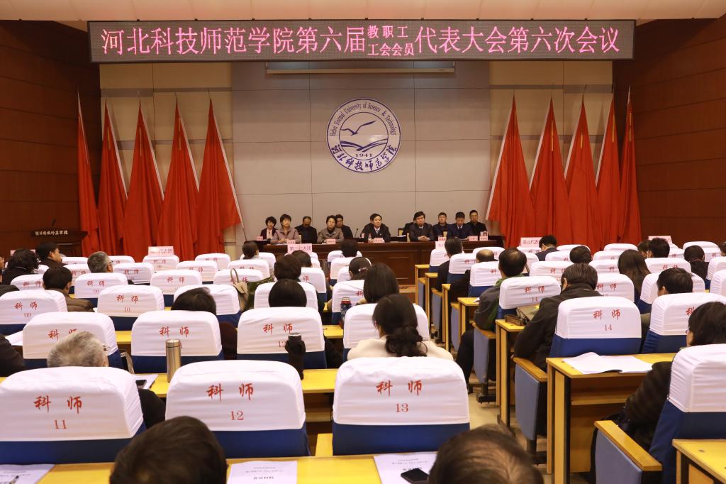 校党委书记靳占忠在六届六次教代会上作总结讲话。校党委常委李佩国代表学校向大会作了题为《团结进取 狠抓落实 奋力开拓新时代特色鲜明高水平应用型大学建设新局面》的工作报告。