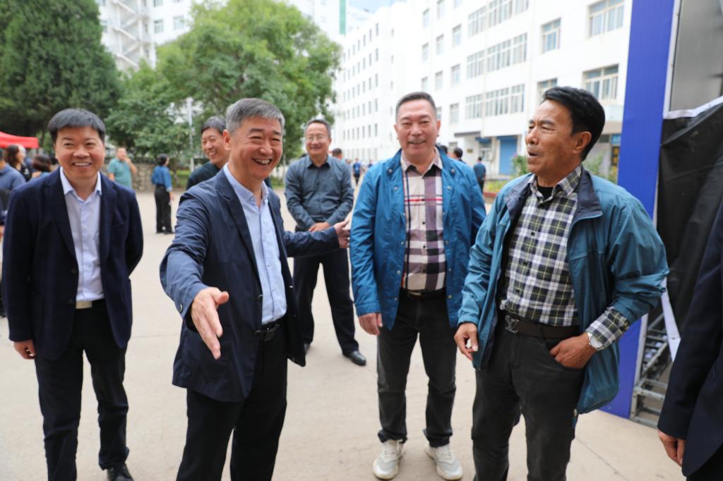 学校党委书记孙政,党委常委、纪委书记郑新同媒体记者亲切交谈