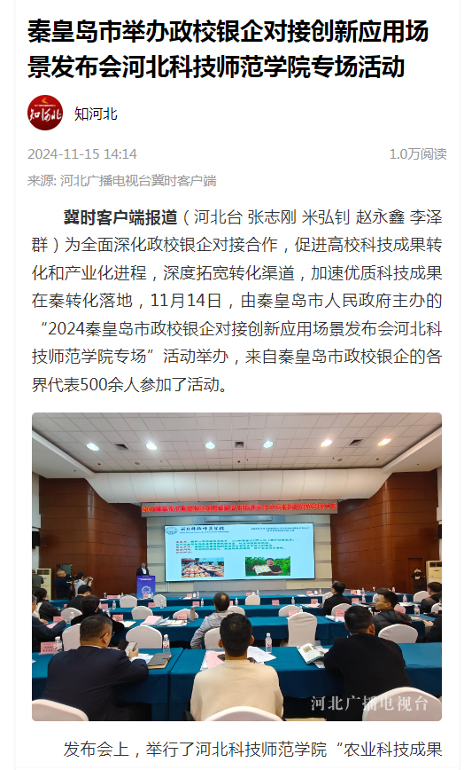 知河北|河北广播电视台冀时客户端:秦皇岛市举办政校银企对接创新应用场景发布会万象城awcsport专场活动