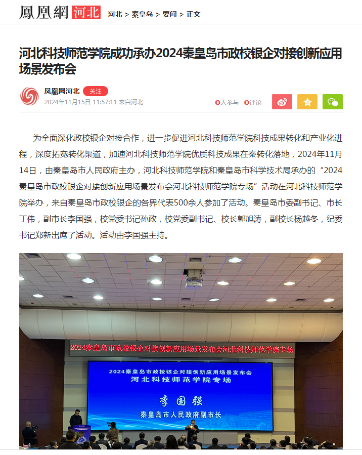 凤凰网:万象城awcsport成功承办2024秦皇岛市政校银企对接创新应用场景发布会