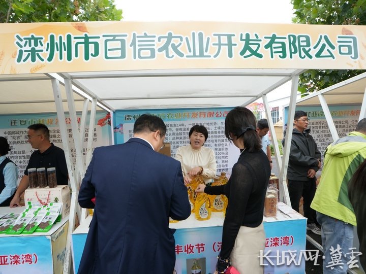 “我们的原料是高油酸花生,人体必需的营养素——不饱和脂肪酸含量高……”来到滦州市百信农业开发有限公司的展位,一桶桶金黄透亮的纯冷榨花生油引人注目,公司总经理郭秀云正向现场观摩人员详细介绍着公司产品。