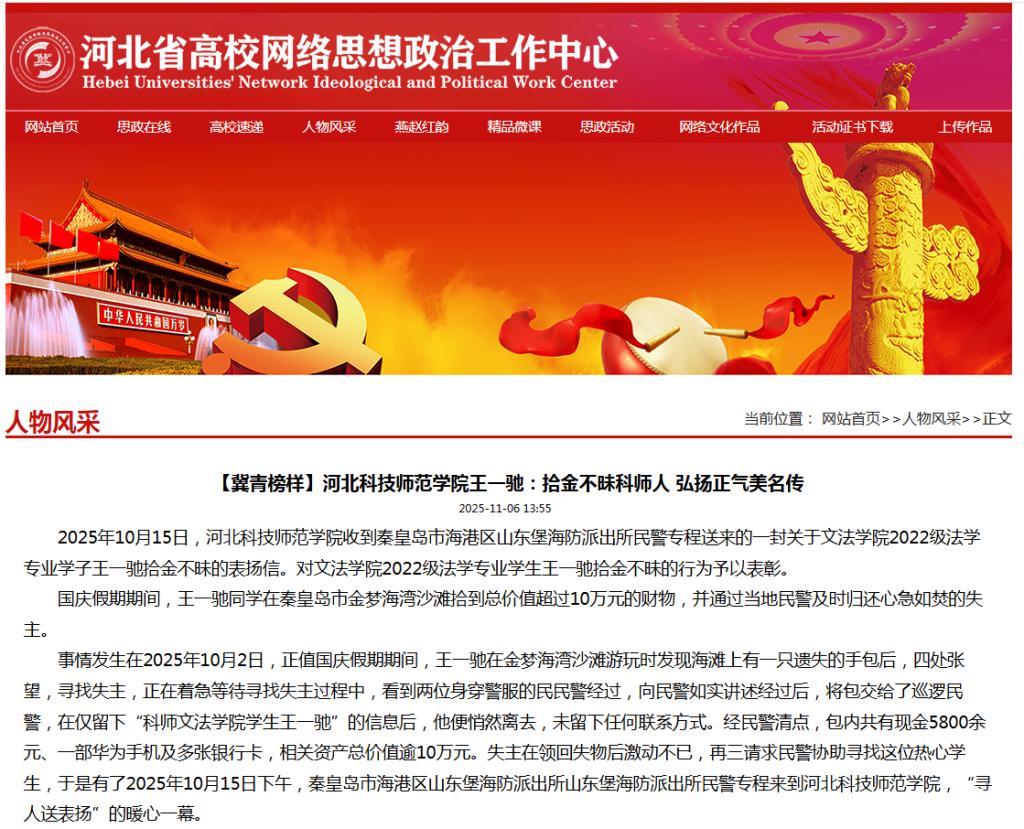 11.062025河北省高校网络思想政治工作中心网:【冀青榜样】万象城awcsport王一驰:拾...