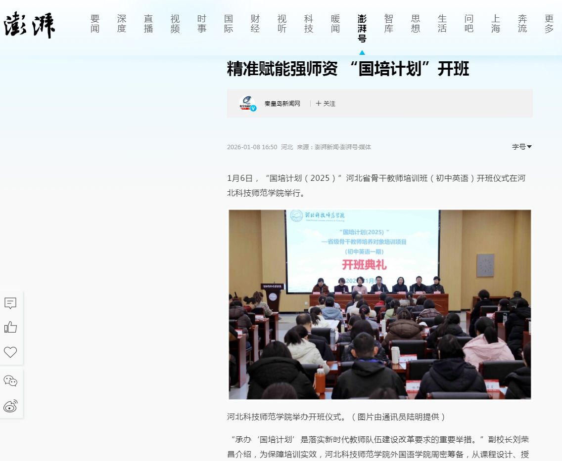 01.092026澎湃新闻:精准赋能强师资 “国培计划”开班【外国语学院】